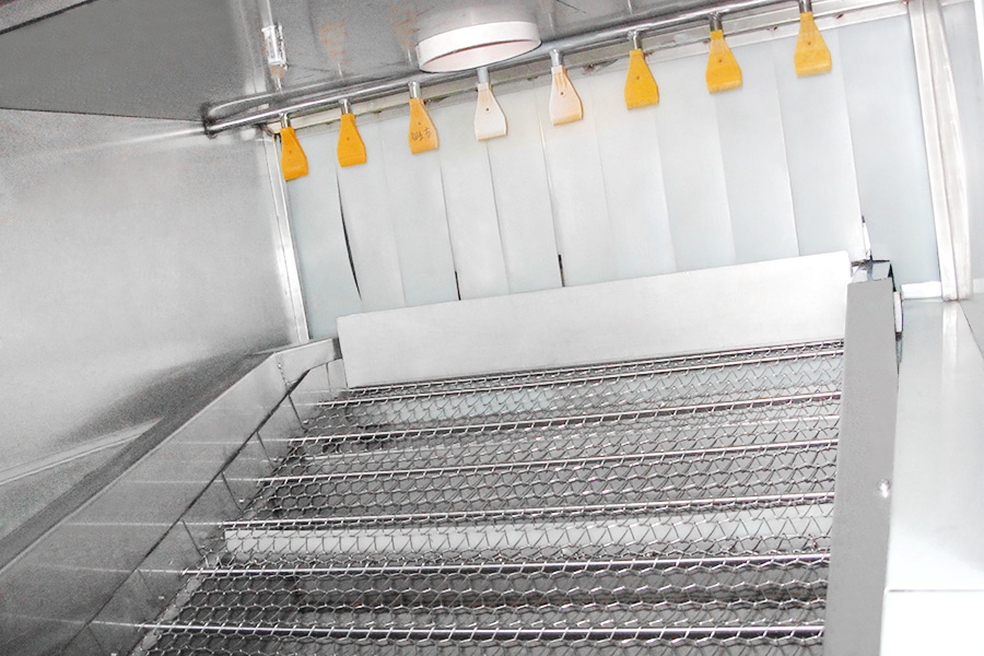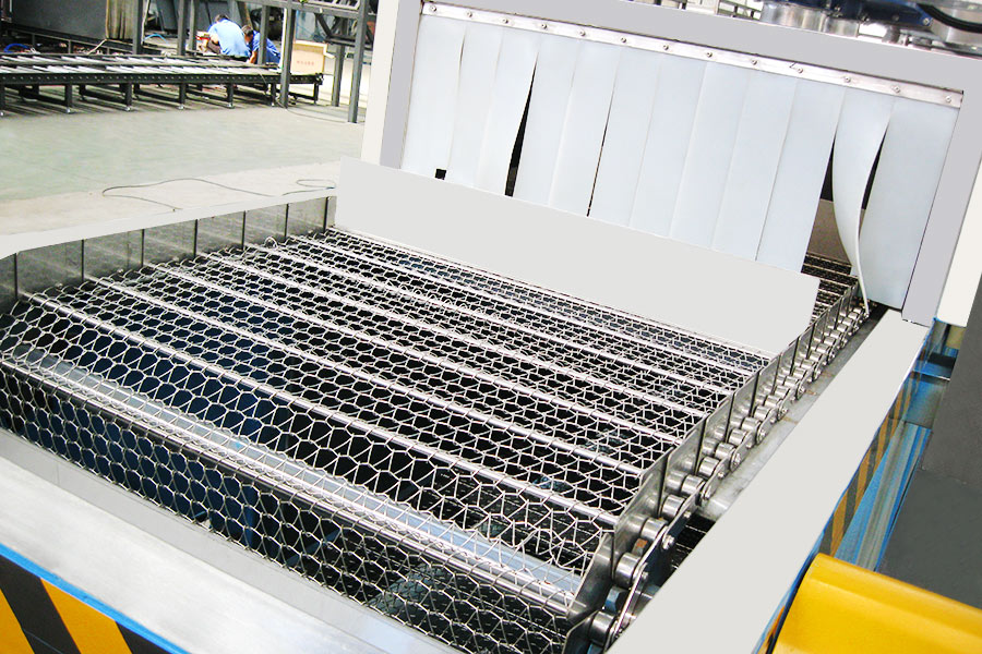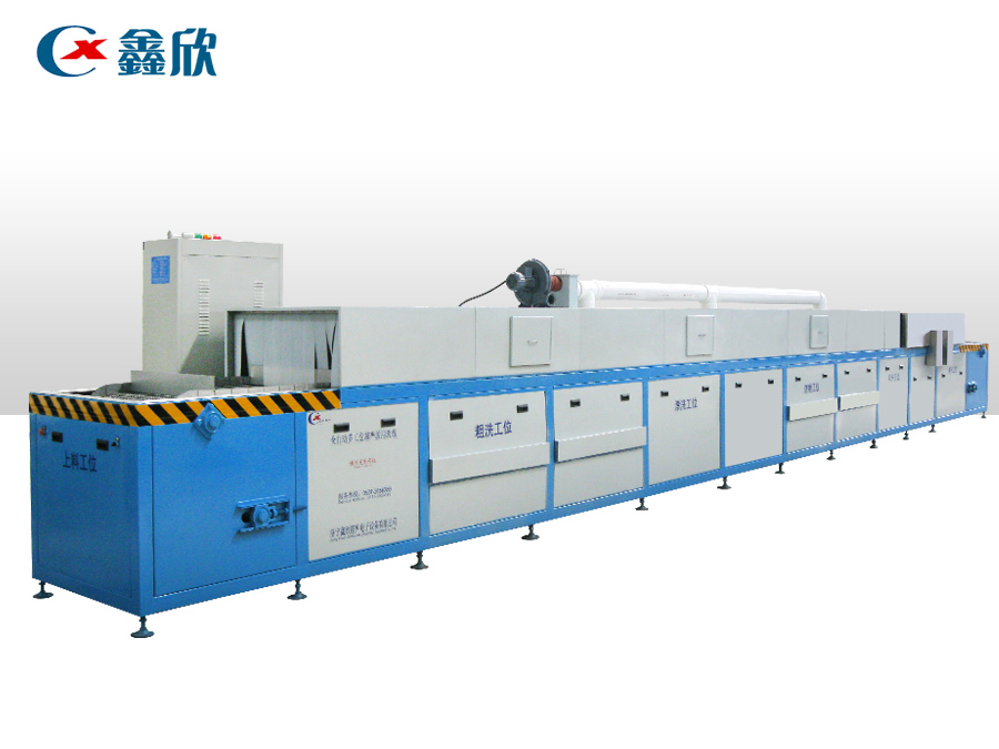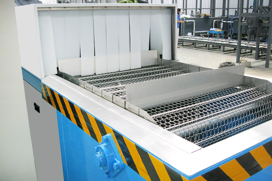 該設(shè)備有上下料網(wǎng)帶、超聲波清洗工位、噴淋漂洗工位、高壓風(fēng)切、熱風(fēng)烘干工位、溫控水加熱系統(tǒng)、風(fēng)機(jī)、溫控空氣加熱系統(tǒng)、移動(dòng)式風(fēng)刀、PLC+觸摸屏控制系統(tǒng)、管路系統(tǒng)及智能電器控制系統(tǒng)等組成。自動(dòng)進(jìn)排液和自動(dòng)加溫系統(tǒng)完全實(shí)現(xiàn)了無人干預(yù),自動(dòng)運(yùn)行,很大程度上降低了工人的勞動(dòng)強(qiáng)度。先進(jìn)的霧氣處理系統(tǒng)可以將清洗時(shí)產(chǎn)生的霧氣冷凝回流,空氣經(jīng)過濾和活性炭吸附后排出。