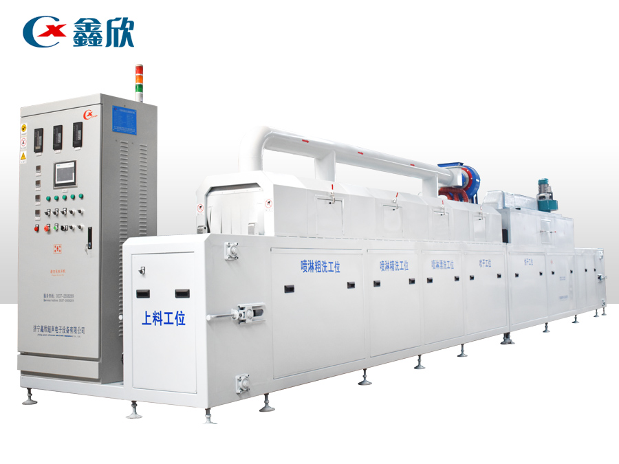 該設備有上下料網(wǎng)帶、超聲波清洗工位、噴淋漂洗工位、高壓風切、熱風烘干工位、溫控水加熱系統(tǒng)、風機、溫控空氣加熱系統(tǒng)、移動式風刀、PLC+觸摸屏控制系統(tǒng)、管路系統(tǒng)及智能電器控制系統(tǒng)等組成。自動進排液和自動加溫系統(tǒng)完全實現(xiàn)了無人干預,自動運行,很大程度上降低了工人的勞動強度。先進的霧氣處理系統(tǒng)可以將清洗時產(chǎn)生的霧氣冷凝回流,空氣經(jīng)過濾和活性炭吸附后排出。